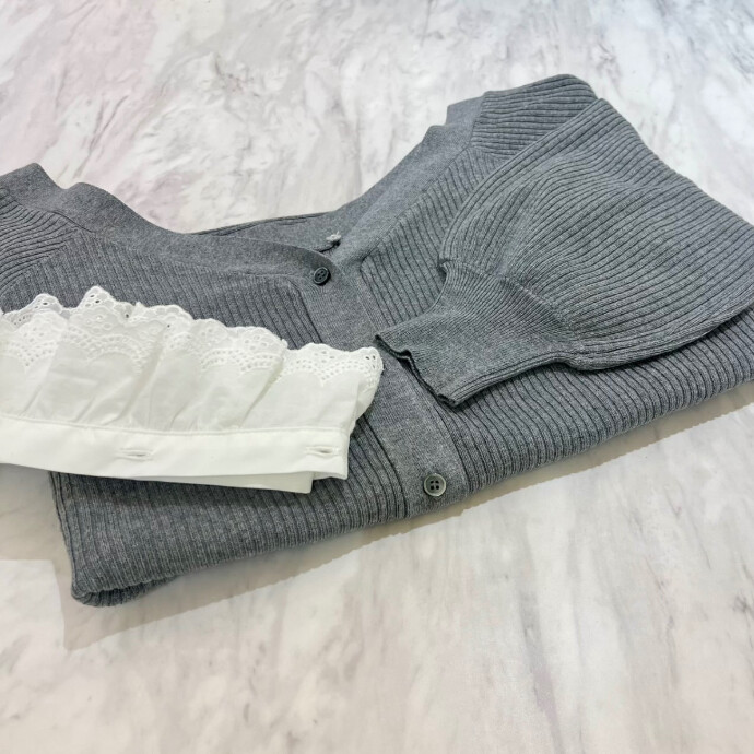 襟が取り外しできるリブカーディガンなので、イメチェンはもちろん春は羽織としても使えるので着回し力◎です。