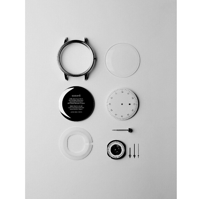 日本製腕時計「sazare(さざれ)」の人気モデル「SK01 / SS SILVER MIRROR FINISH / WHITE DIAL / BLACK SHEEP SKIN LETHER」が再入荷致しました。