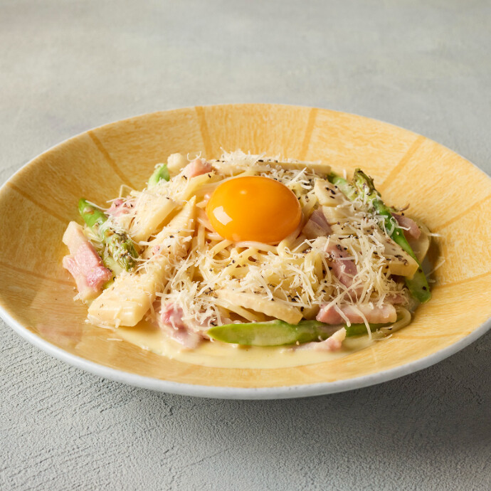 フレッシュアスパラとパンチェッタのカルボナーラ 1,591円(税込1,750円)