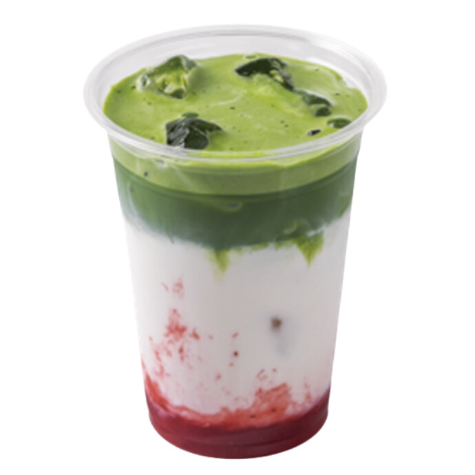 抹茶の奥深い旨みと、甘酸っぱいストロベリーソース、そしてミルキーな味わいが層になり、見た目も味わいも華やかな一杯です。 -