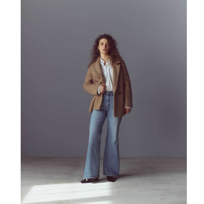なだらかな裾の絞りと絶妙なフレアシルエットが全体のラインを整え スタイリングを新鮮なものへと導いてくれます。