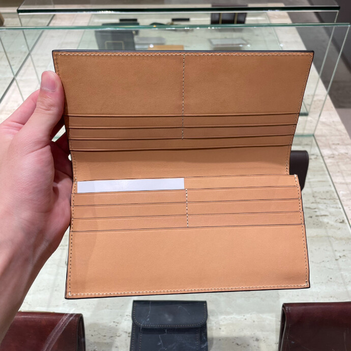 内装には牛革のヌメ革を採用し薄く仕上がっているにもかかわらず、小銭入れも内蔵しています。