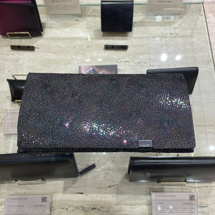 着物や風呂敷など美しく繊細な模様と線の重なりなどで表現される”和文化”を、現代風にアレンジした新しい形の長財布です。 デザインにはどこか親しみがあり、日本人としての品格を再認識させられます。 ¥31,000(税込)