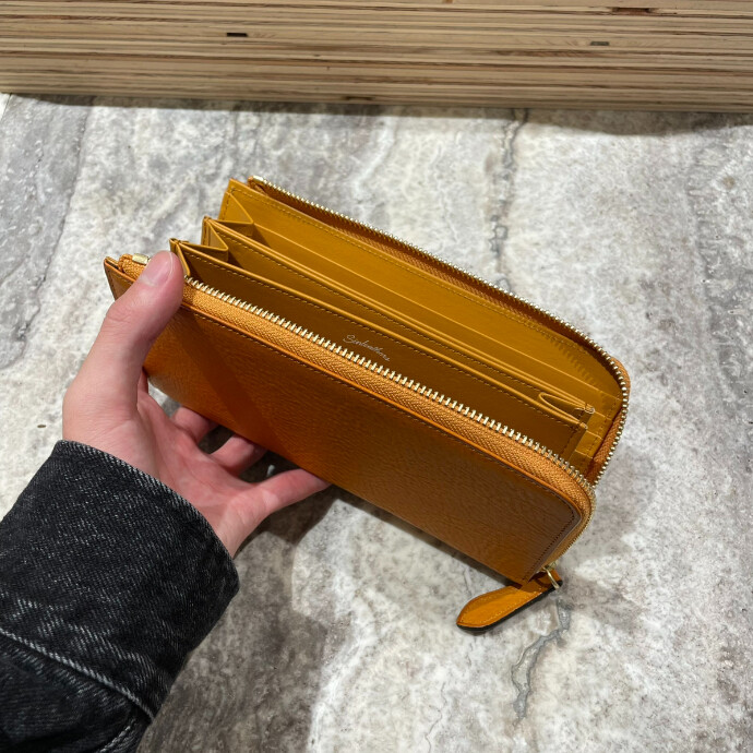高級皮革”ミネルバボックス”を採用したL字長財布。 品を感じさせるミニマルな見た目は革本来の良さを際立たせます。 ¥38,500(税込)