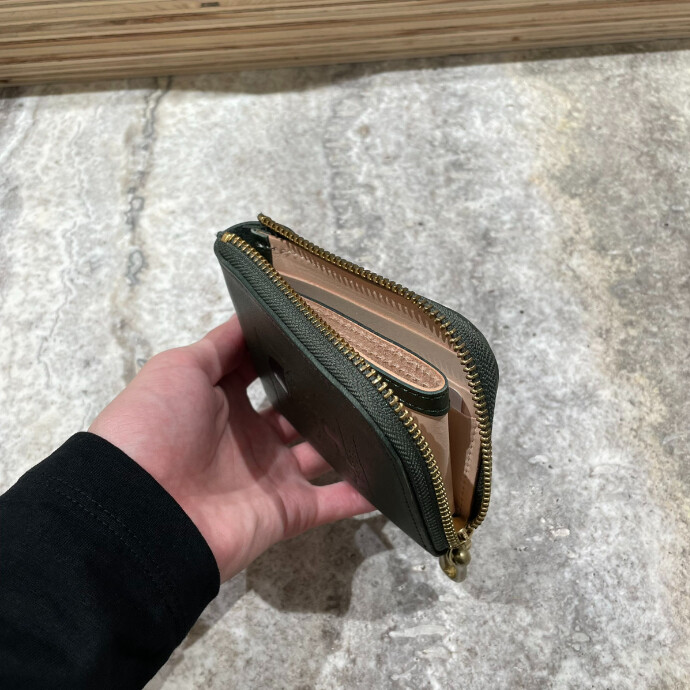 アウターやパンツのポケットに入れても軽快なハーフ型ラウンドウォレット。 最大の特徴は、表面のホックをはずすとお札が入る大型ポケット。 機能性とデザインのバランスがいいコンパクト財布です。 ¥19,500(税込)
