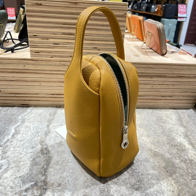 合切袋や巾着袋のようでもあり、縦型のクラッチバッグのようでもある、新しいフォルム。