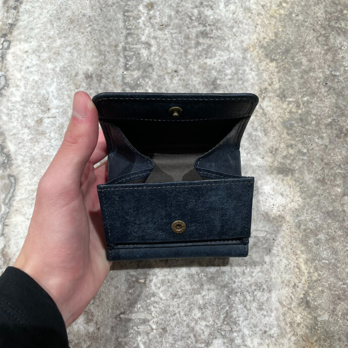 唯一無二の変化をすると称されるプエブロレザーを採用した、ガバっと開くコインスペースが特徴的な三つ折り財布です。