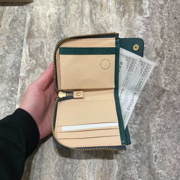 ハーフウォレットのコンパクトさを残しながら、ボタンを外すとお札を折らずに収納できる設計を備えており、大変機能的なお財布です✨