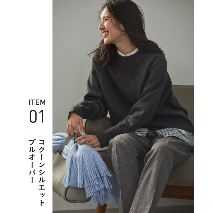 ベーシックな色が続きがちな冬のコーデを華やぐ、カラバリ豊富な定番ニット。