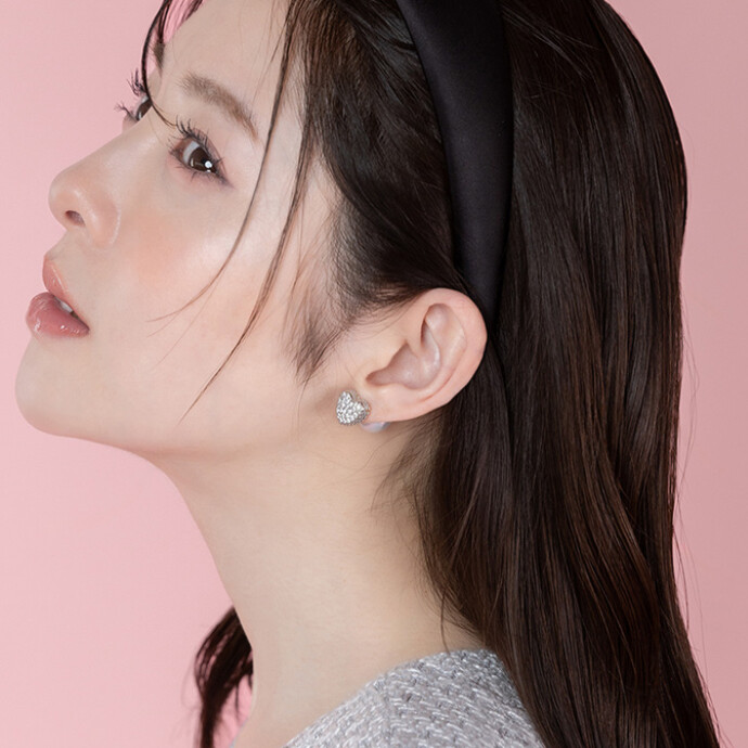 繊細なビジューを贅沢に敷き詰めたハート型のピアス。