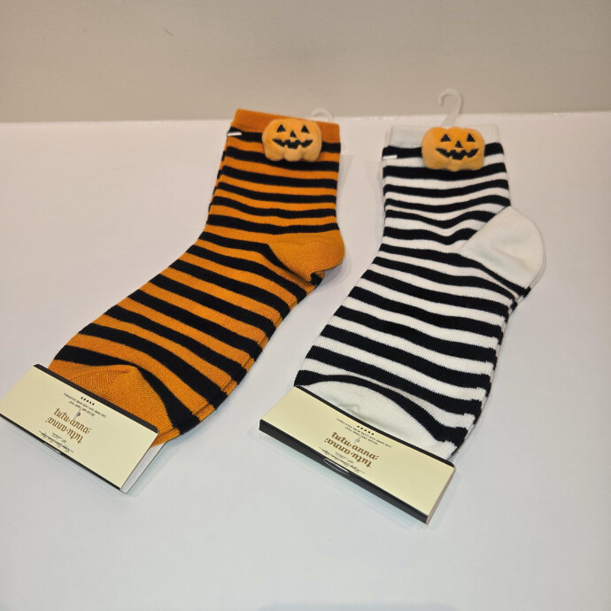 大きめのおばけマスコット、ジャックオランタンマスコットが目を引くハロウィン仕様のソックスです。