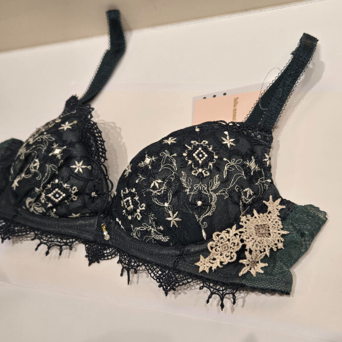 L字ワイヤーとダブルパッドで脇からお胸を寄せ深く丸みのある谷間をつくり、カップ内の伸びにくい布で作った谷間を長時間キープ。カップの内側も肌あたりの良い素材を使用しているので、快適に過ごせます!
