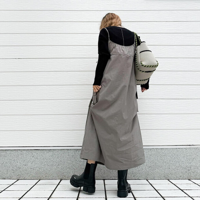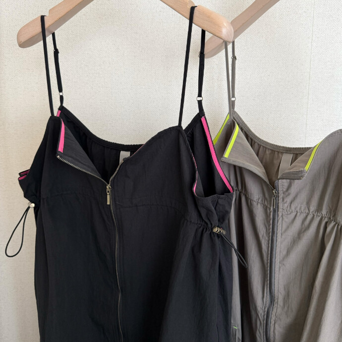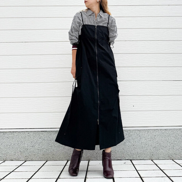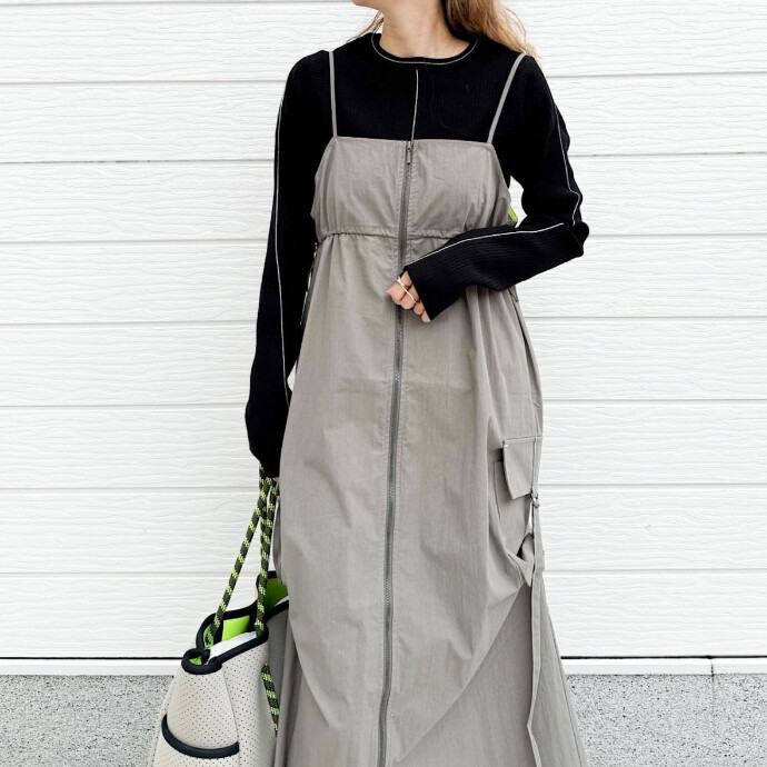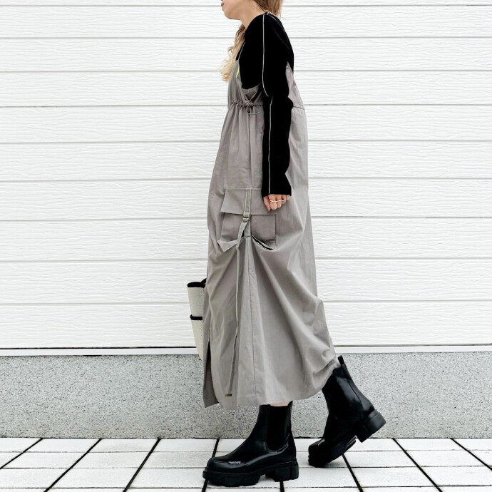 カーゴディティールとワークテイストが今年っぽいキャミワンピースです。