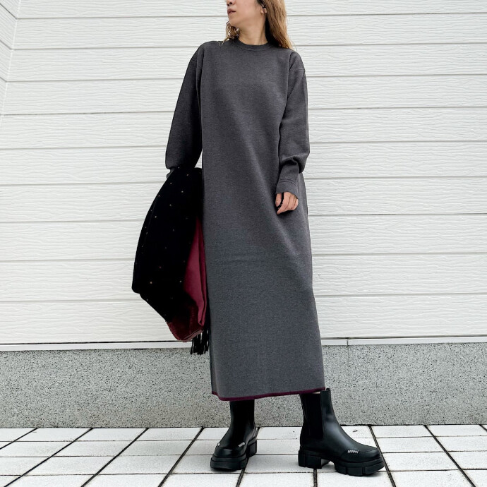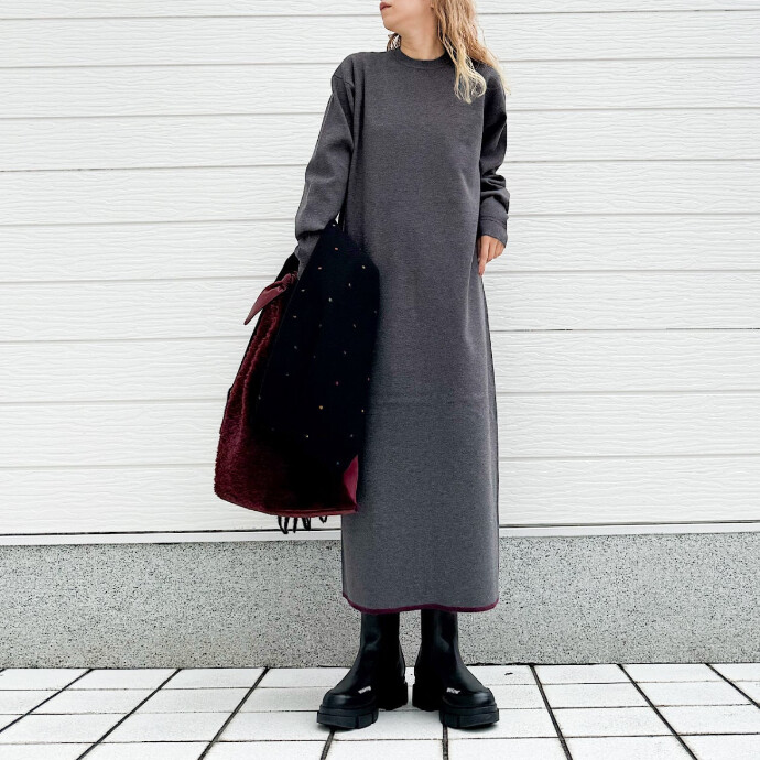 肌触りの良いニット素材を使用した、ロングワンピースです。