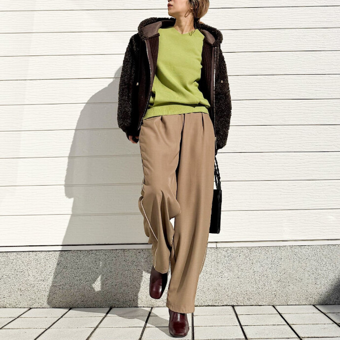 カジュアルなボトムとの相性はもちろん、ロングスカートなどでの女性らしい着こなしもおすすめです。