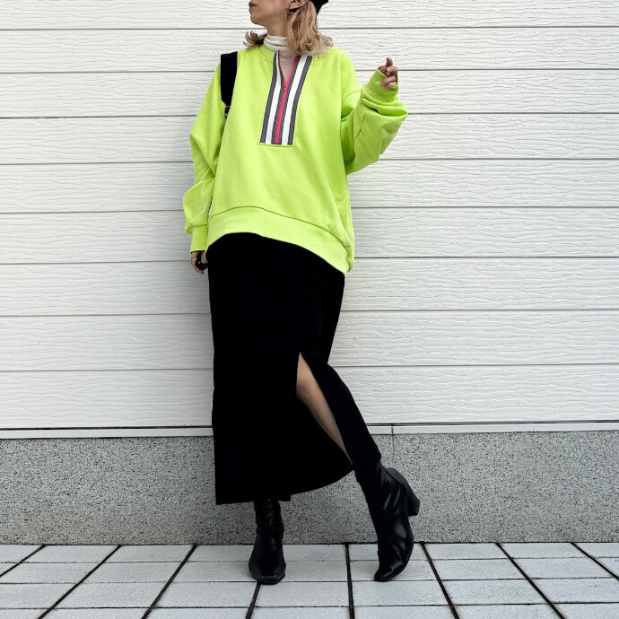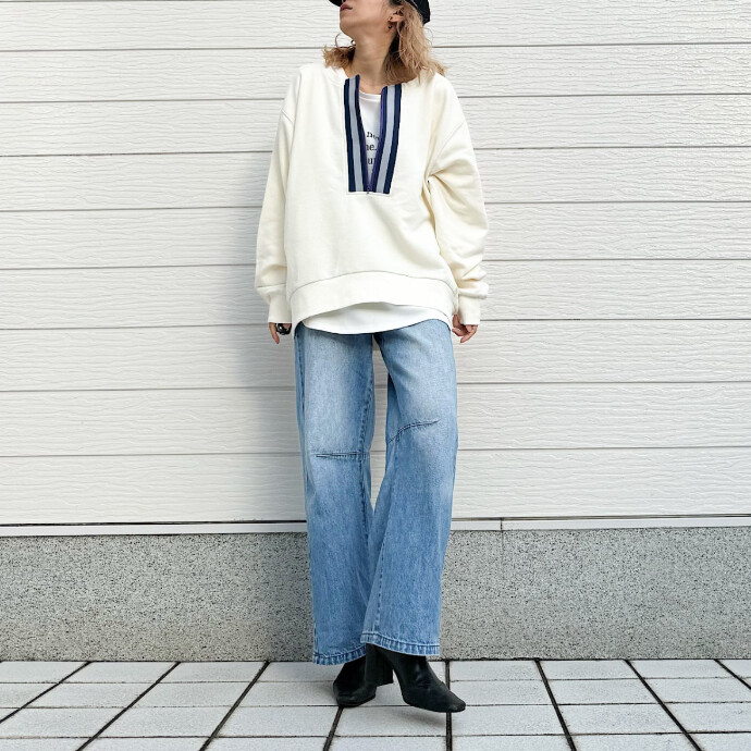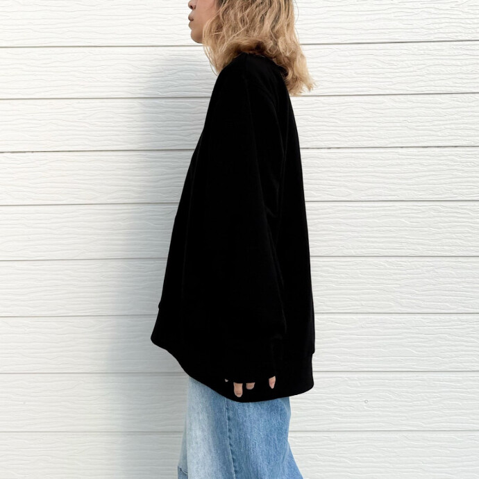 裏毛素材でゆったりとしたシルエットがリラックス感を演出。