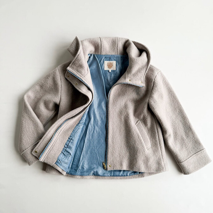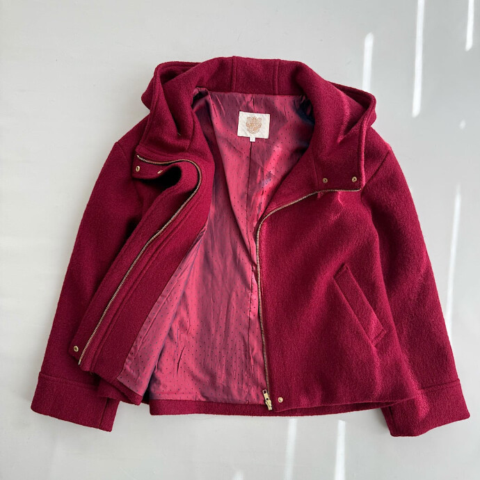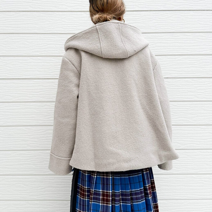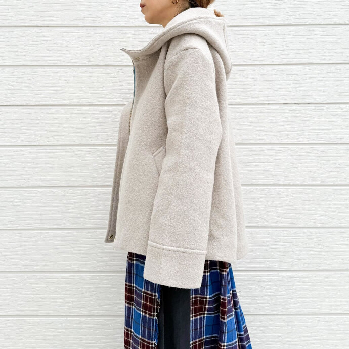 ウール100%素材の、ジップアップフーディーショートコートです。