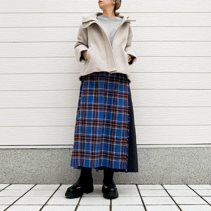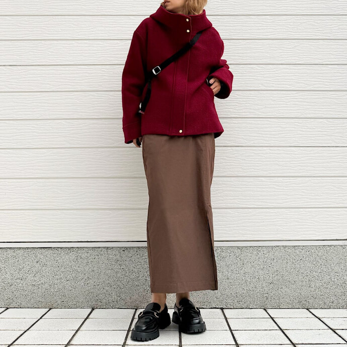 コーディネートに合わせやすいように、若干のAラインと丈感にも拘った一着です。