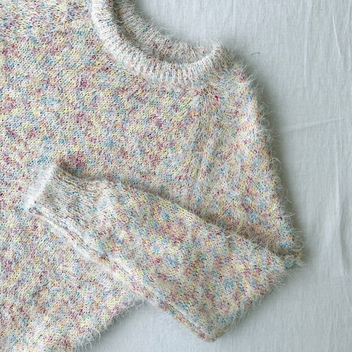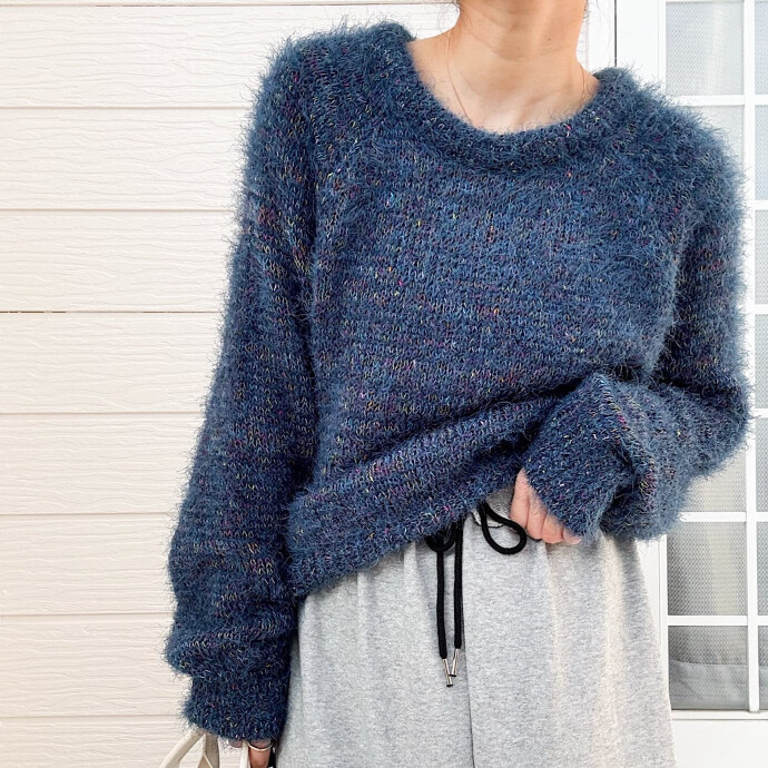 ふんわりとした毛足が魅力のニットに、さりげないカラーネップをミックスした表情豊かニットです。