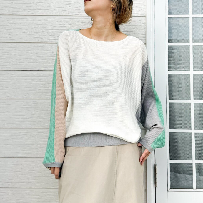 ドルマンスリーブの適度なゆるさが可愛い、毎年人気の横リブニットの登場です。