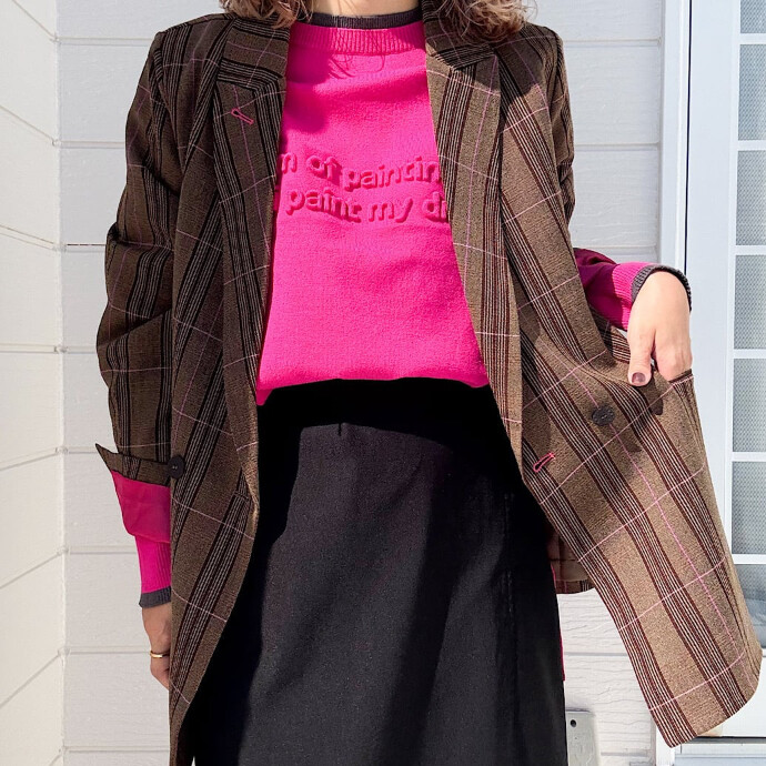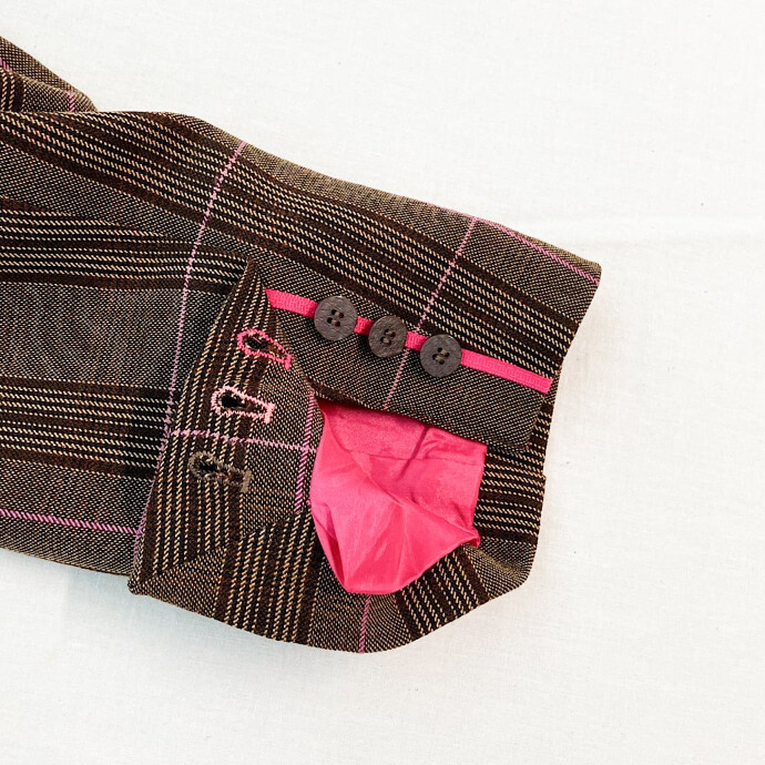 トラッドなチェック柄に、ピンクのラインを効かせた遊び心あるジャケット。