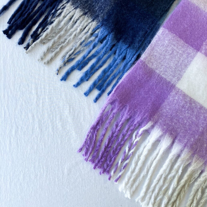 ブルーやネイビーのミックスカラーは洗練された印象大人っぽくクールなスタイリングに、ラベンダー×アイボリーは柔らかな配色が、顔周りをパッと明るく見せてくれます。