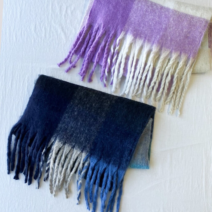 寒い季節を彩る、ふんわり柔らかなボリュームマフラーです。