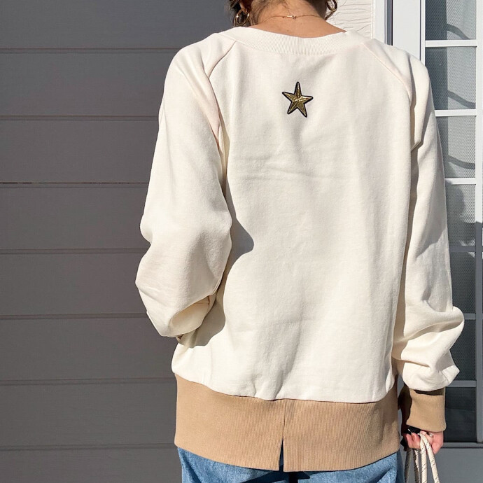 ラグランスリーブで肩まわりに程よいゆとりがあり、リラックス感のある着心地◎