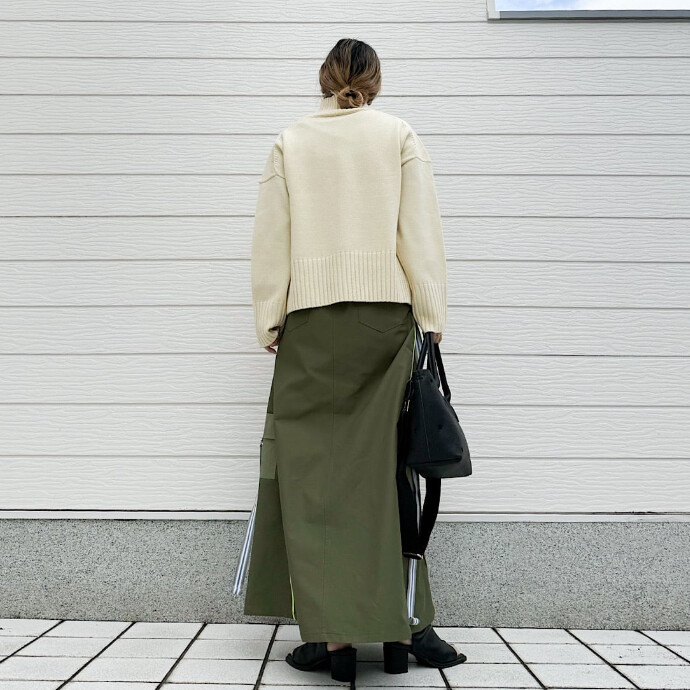 開けるとフレア、締めるとタイトと1枚で2度楽しめるのも嬉しいポイントです。