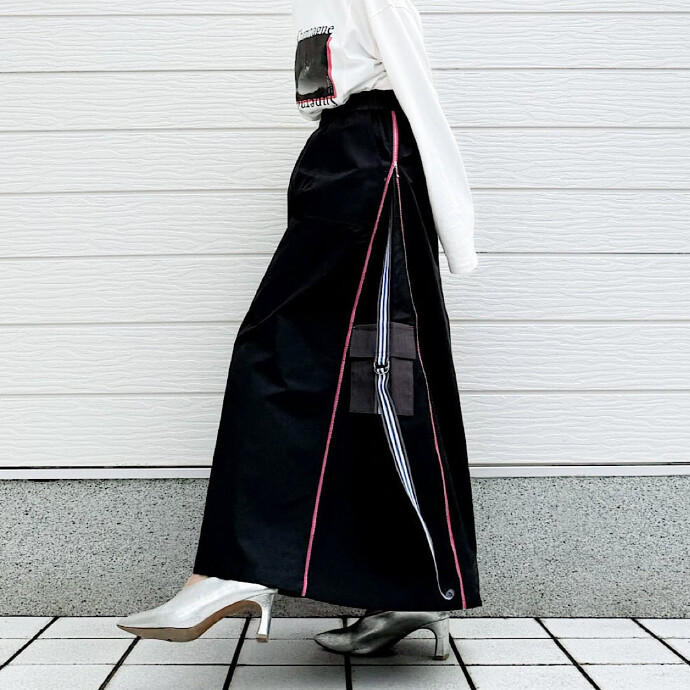 コットン、ナイロンのお素材なのでドライタッチで通年を通して履ける軽やかなスカートです。