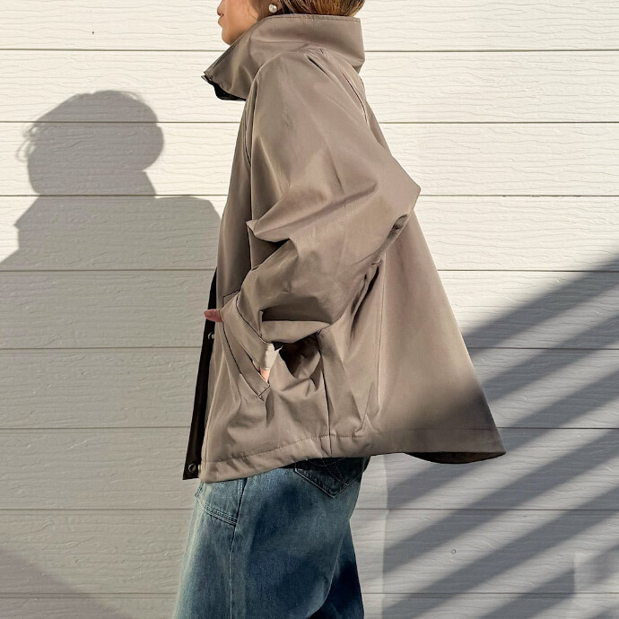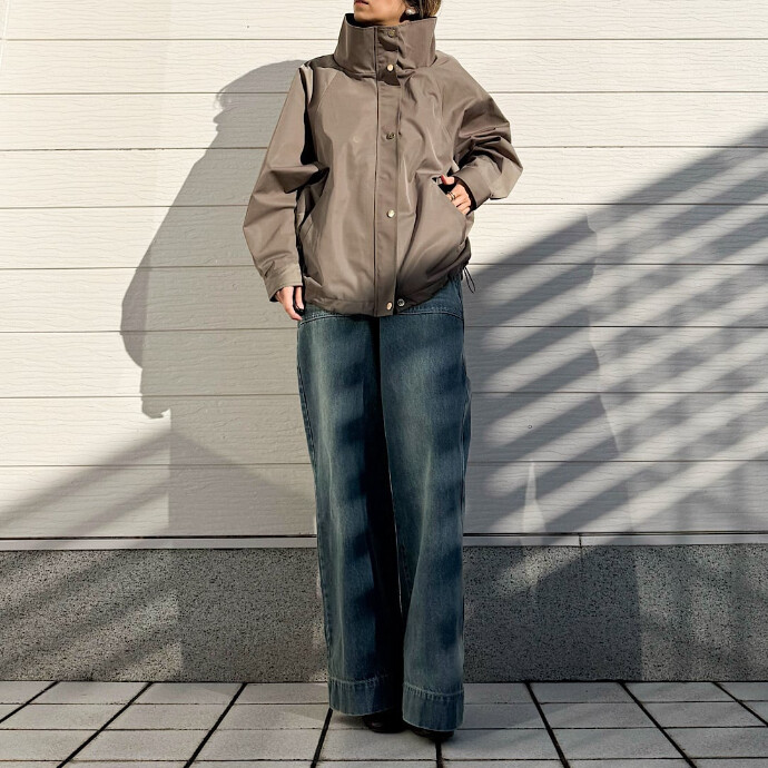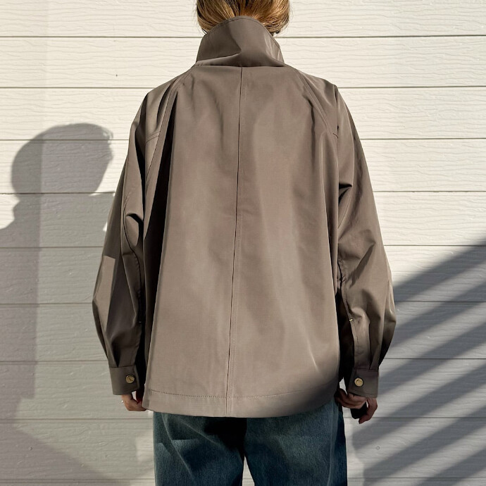 綿混の軽めのツイル素材を使った、春や秋に活躍間違いなしの軽アウター。