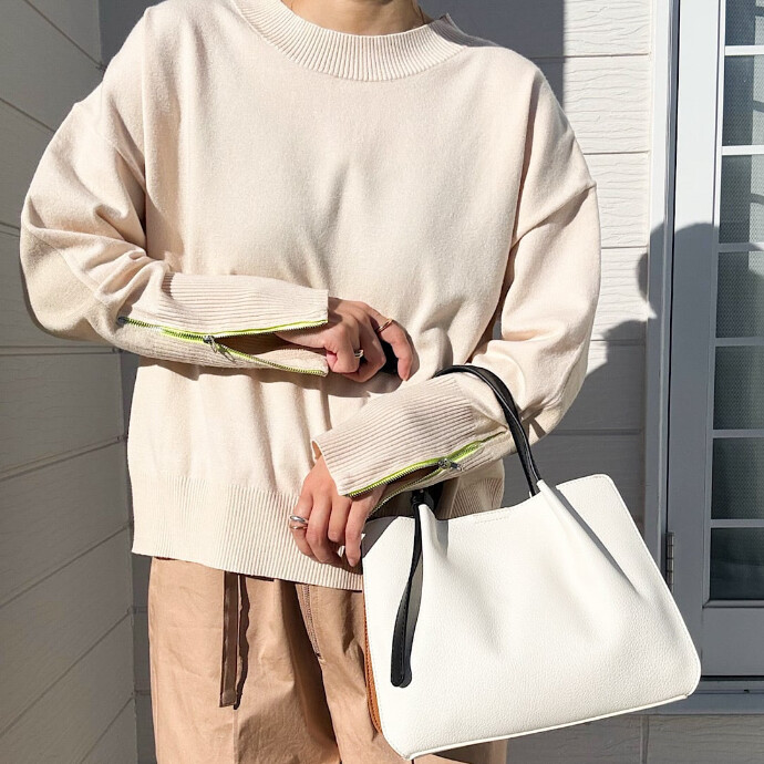 袖先部分にはジップを施しているので、開けてインナーを見せることで雰囲気の違ったコーディネートを楽しむこともできます。