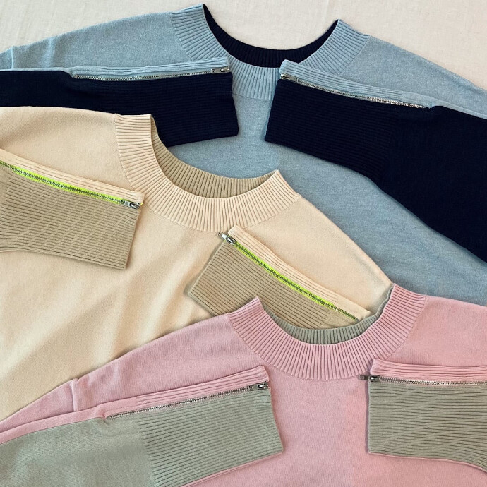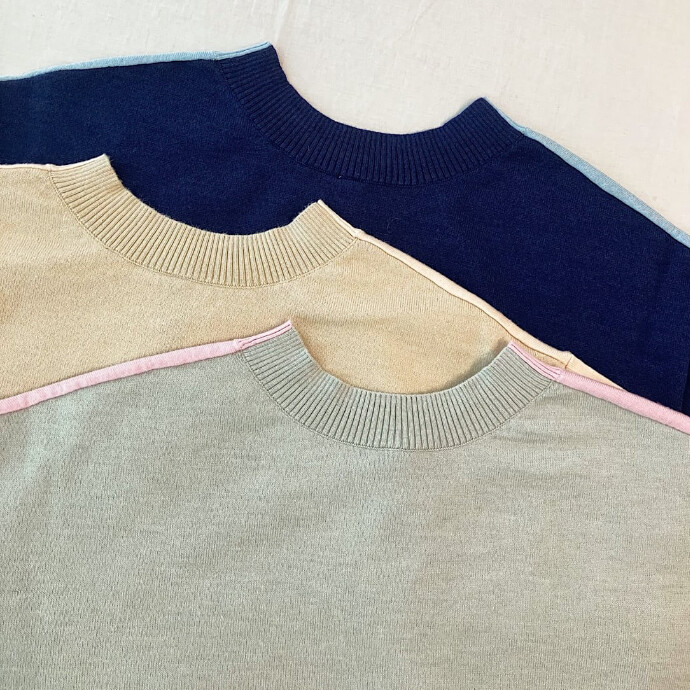 前後で印象の変わるバイカラーに仕立てた春ニットです。