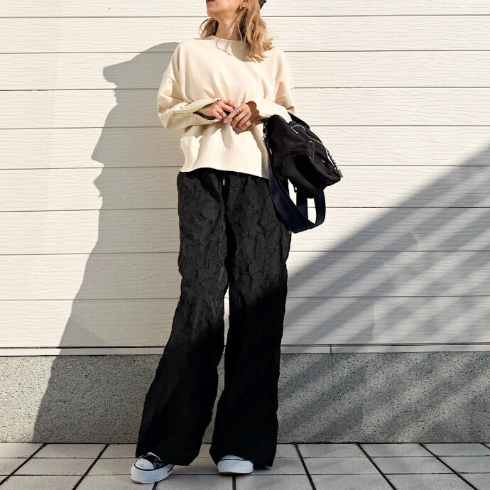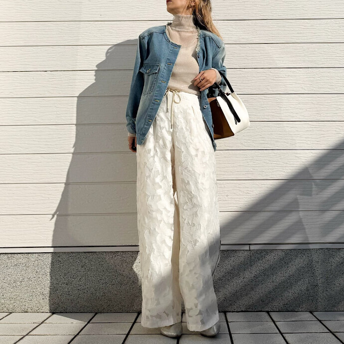 ジャガード地が程よい存在感を出してくれるのでシンプルなトップスと合わせるだけでもコーディネートが華やかに仕上がります。