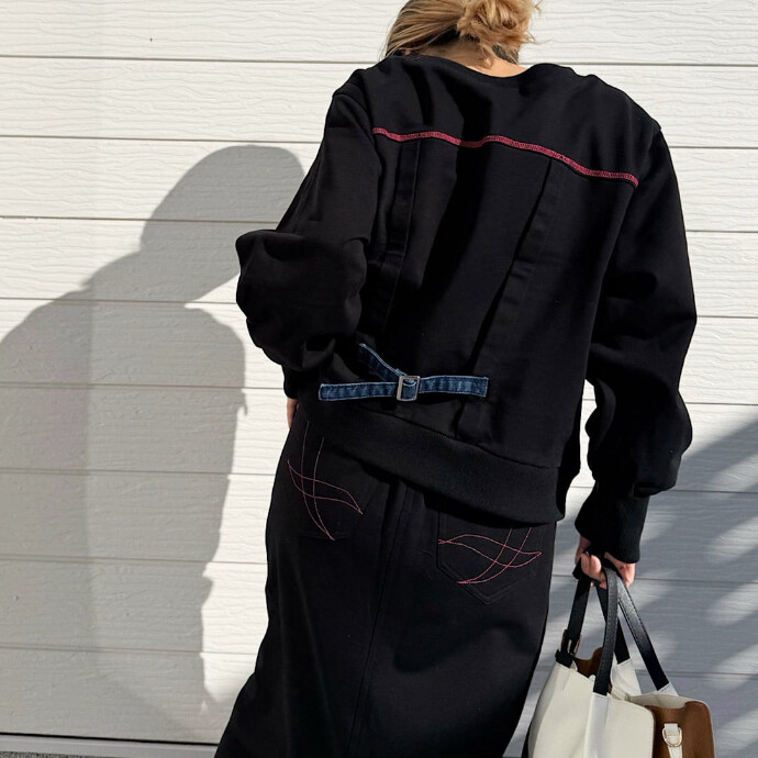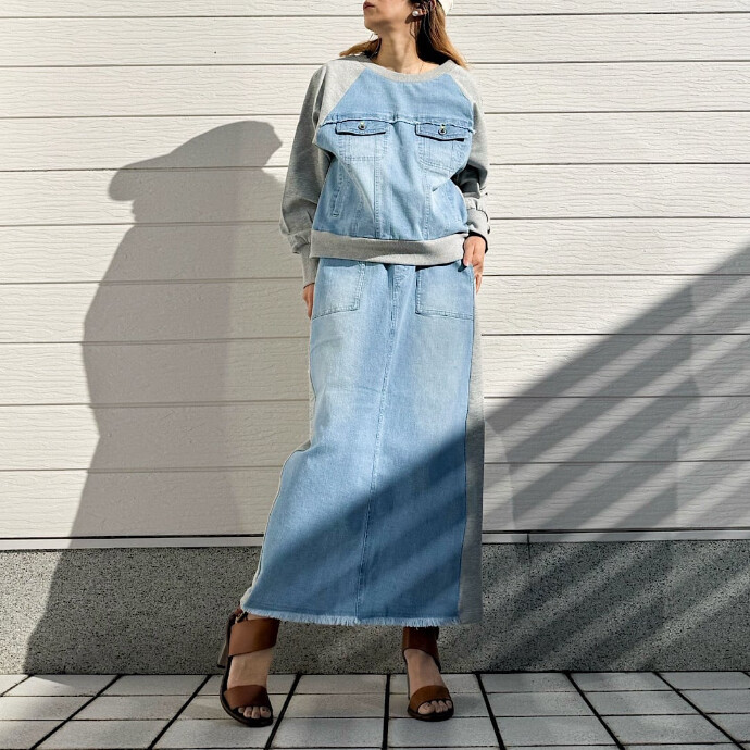 スウェット×デニムのドッキングトップスです。