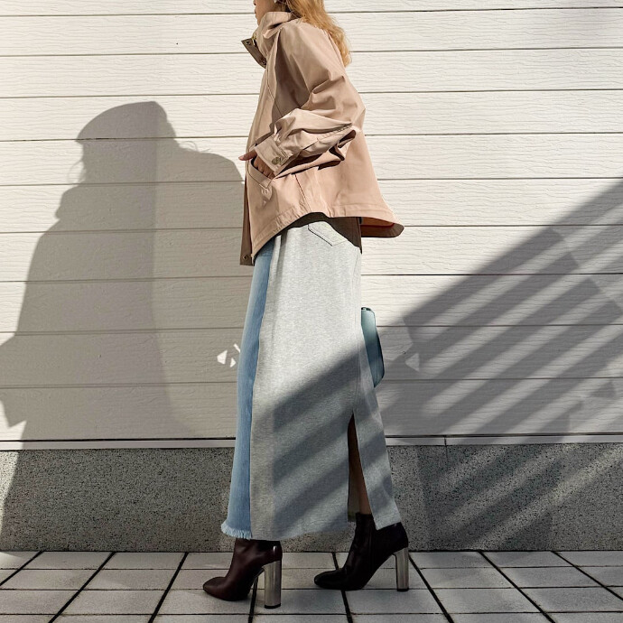 デニム×スウェットのドッキングスカートです。