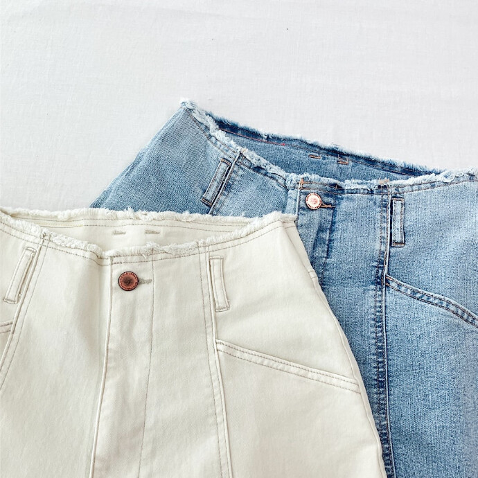 カットオフで仕上げたウエストは、フリンジのような仕様になり、こなれ感をプラス。