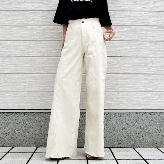 フロント中心にステッチを入れ、Iラインを強調しスタイルアップの叶う一本に。