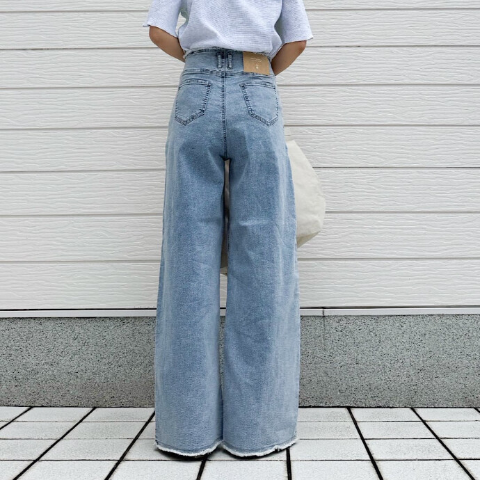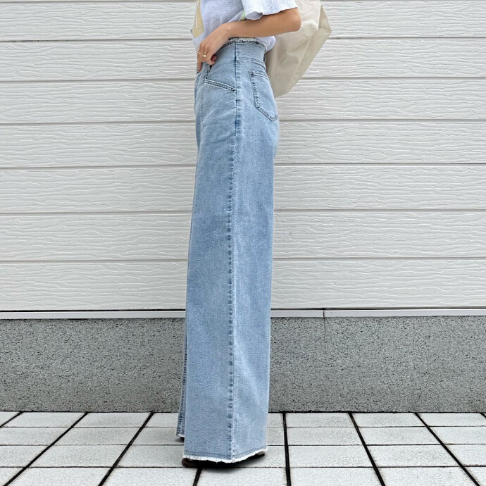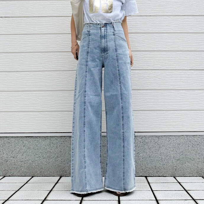 春らしいカラーのワイドデニムです。