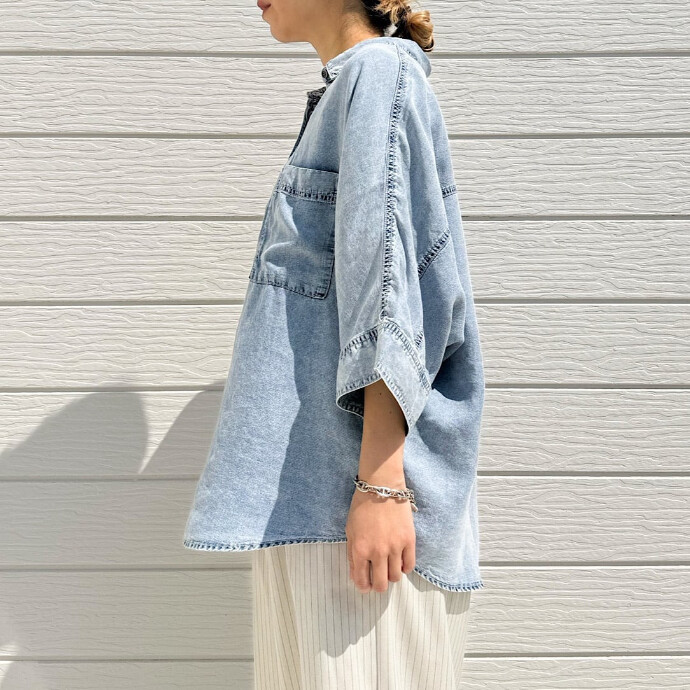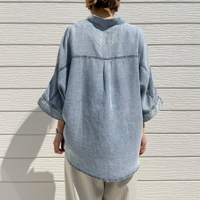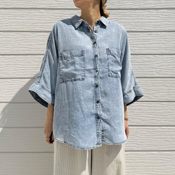 デニムのタフなニュアンスはそのままに、とろけるような肌触りのテンセル素材で仕上げた1枚。