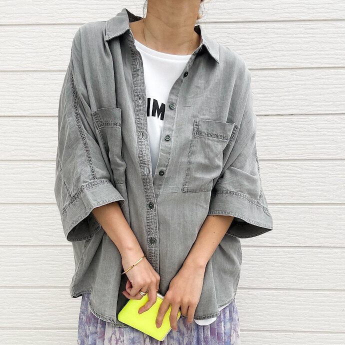 釦を少し開けて襟を抜いたり、Tシャツやタンクの羽織にしたりとカーディガンよりも都会的な印象を与えこなれ感を出してくれます。