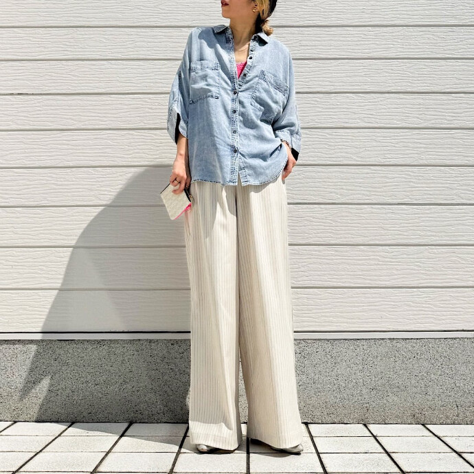 サンダルやミニバッグを添えて軽やかなお出かけスタイリングに良いです。