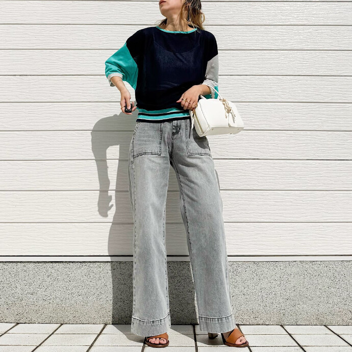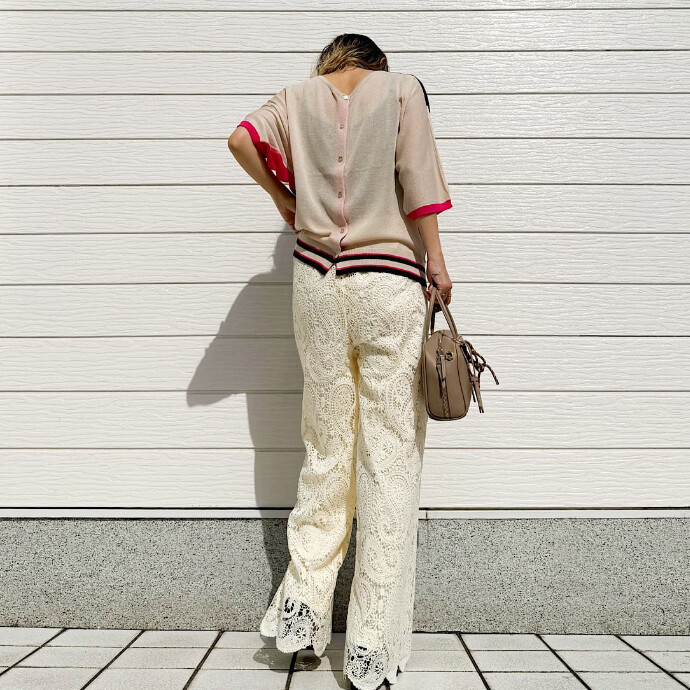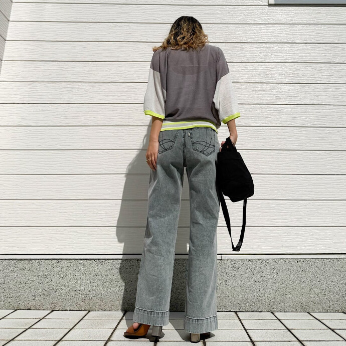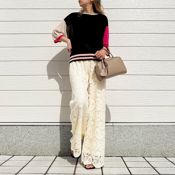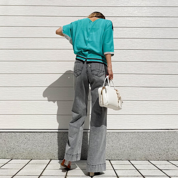 1枚で主役級のニットなのでデニムやシンプルなボトムに合わせるだけで引き立ちます。