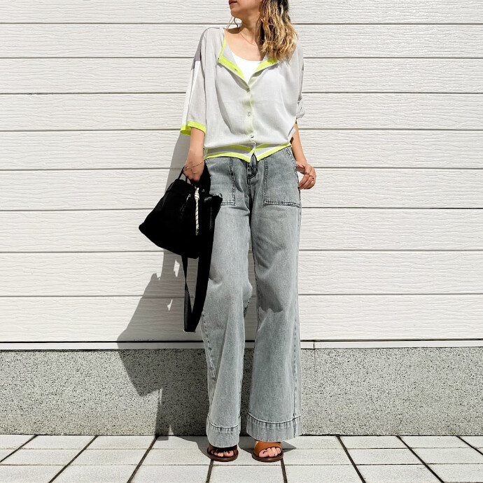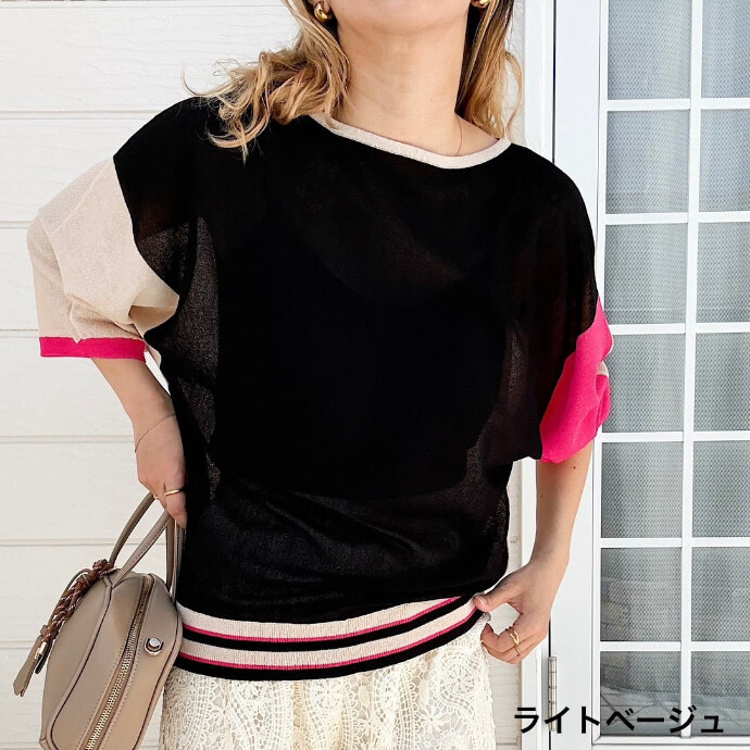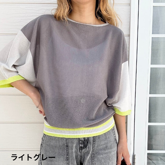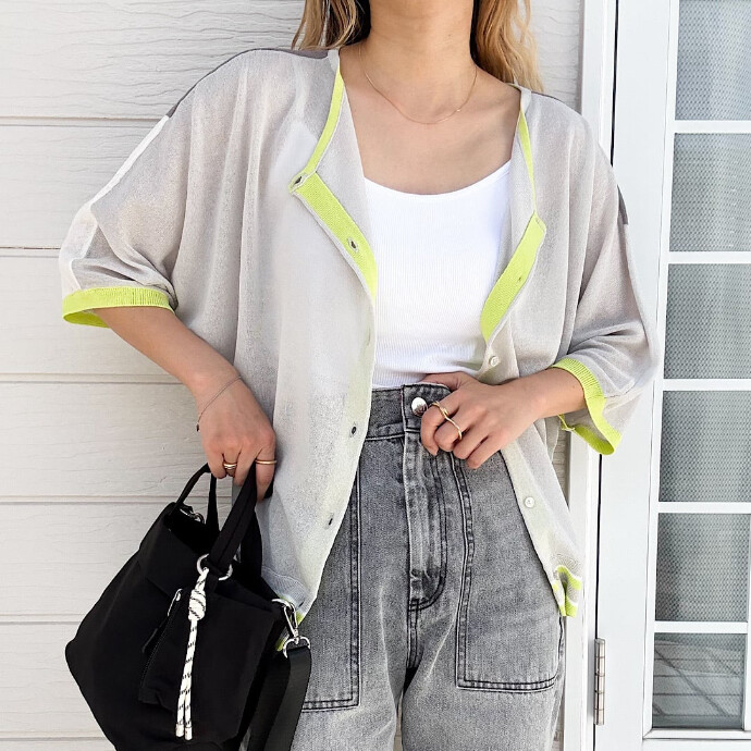 シャリミのあるニットなので汗ばむ時期もサラッと着て頂けて、夏の日除けや冷房対策にもなります。