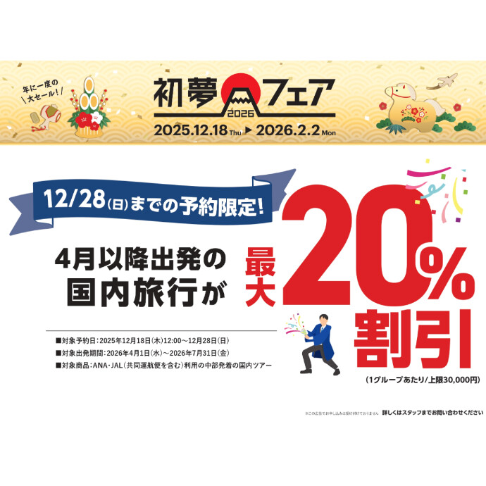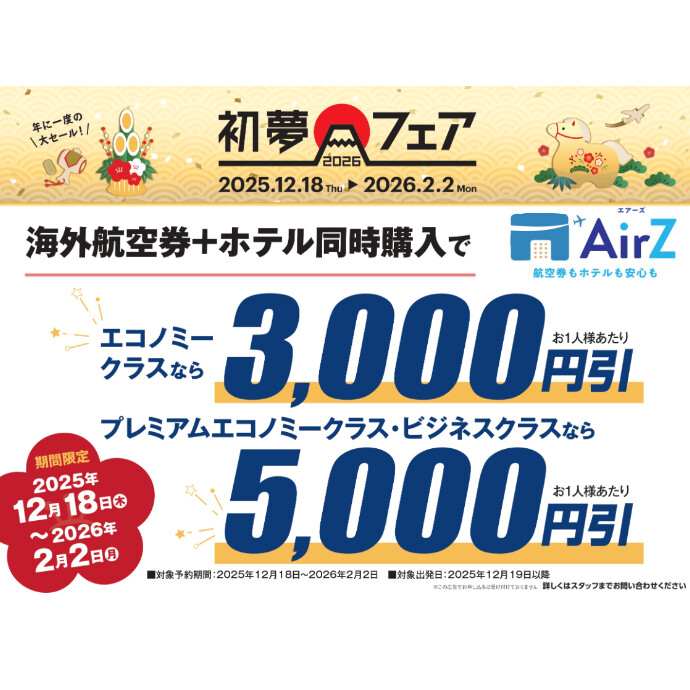 HISの年に一度の大セール、初夢フェアがいよいよスタートします。